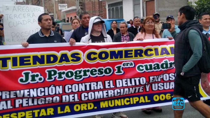 |ETC.PE|: Los comerciantes de diferentes asociaciones de vendedores y propietarios de tiendas del jirón Progreso y Arequipa salieron a las calles este martes para protestar contra la Municipalidad Provincial de Barranca. Exigen el cumplimiento estricto de la Ordenanza Municipal N.º 006-2017, que prohíbe la venta informal o ambulatoria en un radio de 100 metros alrededor del centro de abastos.