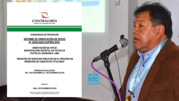 |ETC.PE|: La gestión del alcalde Carlos Michell Rivera Bazalar vuelve a quedar en entredicho. La Contraloría General de la República notificó oficialmente a la Municipalidad Distrital de Pativilca la detección de una situación adversa, evidenciando deficiencias en el manejo del Registro de Servicios Públicos dentro del proceso de Rendición de Cuentas de Titulares.